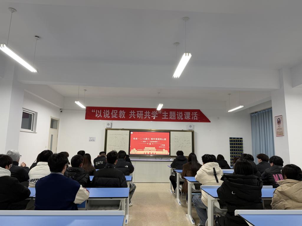 为缅怀革命先辈、传承爱国精神,引导青年学子厚植家国情怀、勇担时代责任,在一二·九运动纪念日来临之际,工学院于12月9日在景芝楼B205举办“传承一二·九精神,勇担时代新使命”主题纪念活动,团员代表及入党积极分子参与此次活动。