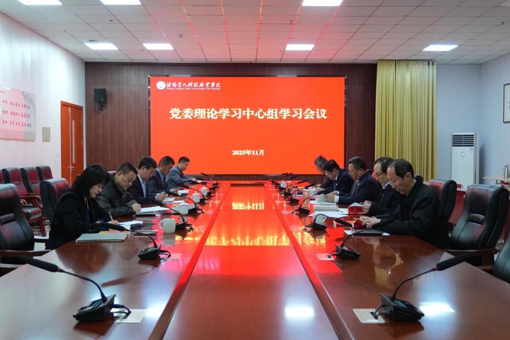 11月27日,我校召开党委理论学习中心组学习会议,围绕《习近平谈治国理政》(第五卷)和党的二十届四中全会精神进行专题学习研究。党委书记肖明胜主持会议并讲话,党委副书记、校长亓俊忠等全体校级领导、省派党建指导员参加会议。
