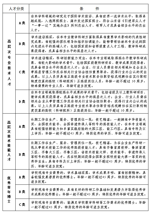 (一)高层次专业技术人才。学术造诣深,科研创新能力突出,在本专业领域取得高水平教学科研成果、有较大影响的高端人才或学术骨干。分 A、B、C、D 四类。
