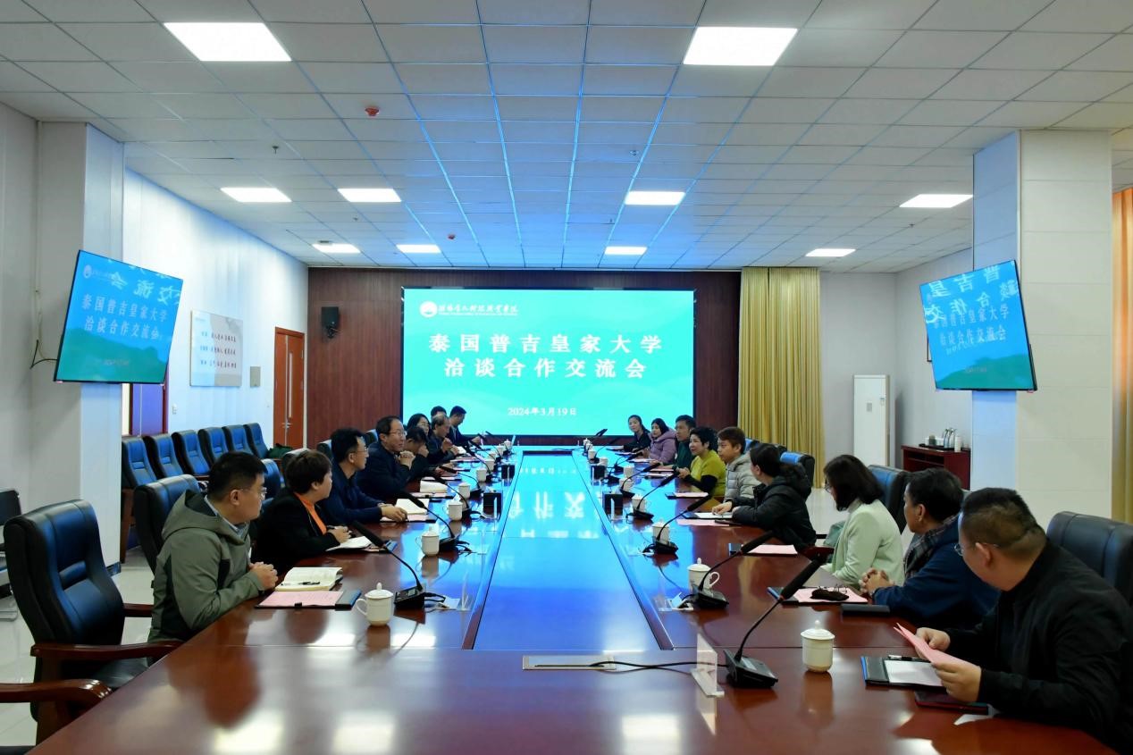 3月19日,泰国普吉皇家大学副校长陈萍洁博士、助理院长陈伟建一行来我校考察合作办学事宜。